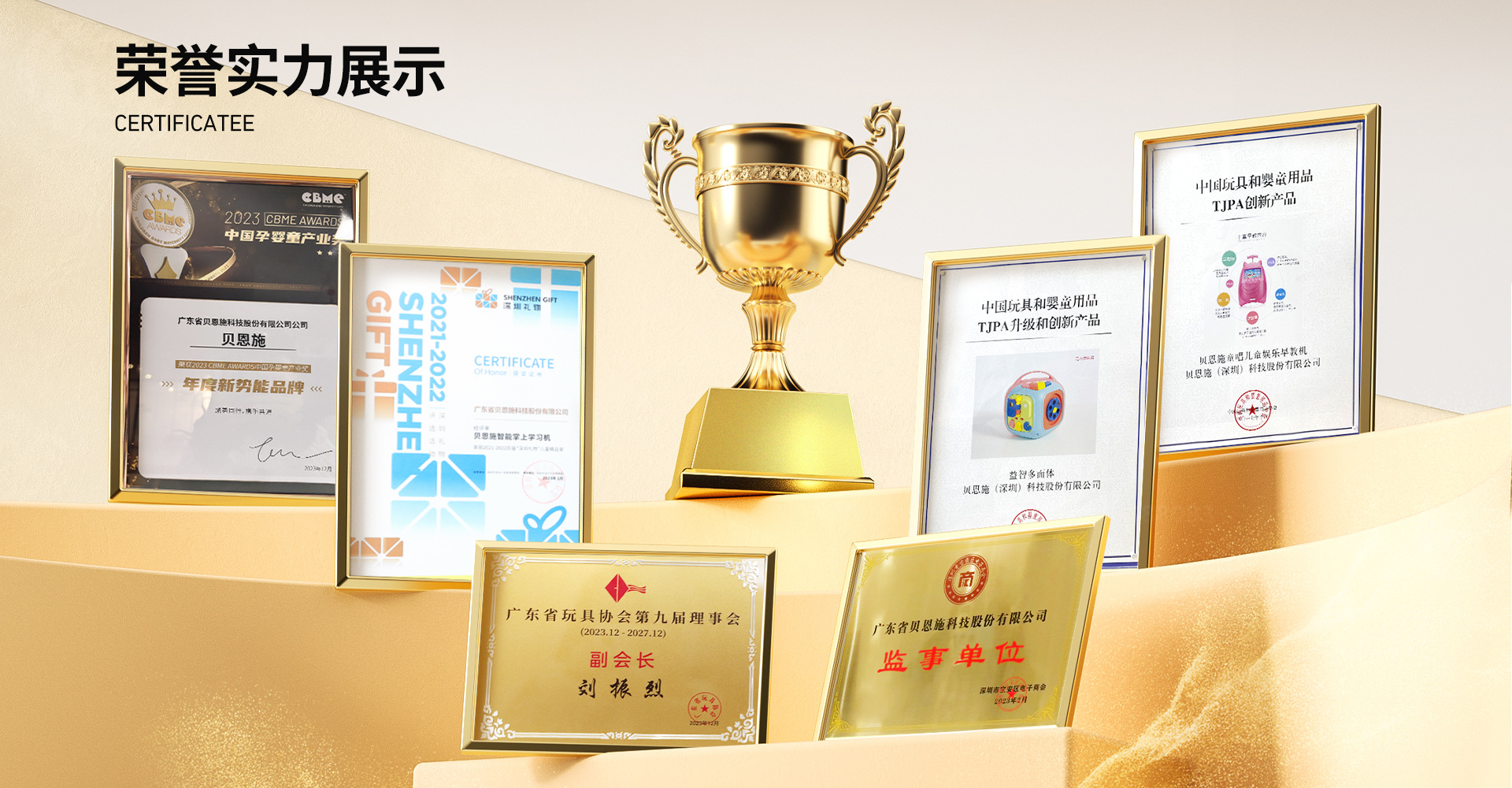 贝恩施成立于2012年7月,于2016年4月成功挂牌新三板,证券代码836818,是一家专注于儿童智能教育产品集设计、研发、制造和营销的创新型科技公司。公司坚持以用户需求为导向的产品开发模式,以大数据为驱动的产业发展模式,致力于成为一家深切了解儿童教育需要,为每个育儿家庭提供感动人心的产品及服务的企业。贝恩施儿童智能教育产品研发生产基地 总建筑面积49000㎡,同时配置精益制造生产设备、各种先进精密的研发设备仪器、自动化智能仓储物流设备等。贝恩施品牌 旗下产品拥有多个知识产权证书其中包括约有80+件软件著作权、100+实新/发明专利、200+项外观专利、300+件美术著作权。贝恩施作为深圳玩具协会会长单位,积极响应AIGC大模型技术,依托AI玩教系统及大模型技术布局,全力推动品牌产品AI智能化升级与传统产品全面化转型.